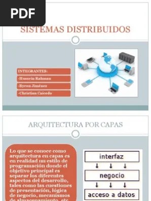 A short summary of this paper... Dos computadores diferentes, lo que llevó naturalmente a distribuir las... El término capa hace referencia a la forma como una solución es segmentada desde el punto de vista lógico.